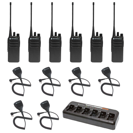 Motorola CP100D Non-Display 6 Pack bundle with multi unit charger and Speaker Microphones