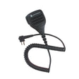 This compact microphone has a revolutionary windporting feature that helps lessen background noise from high winds and other severe weather conditions. Audio can pass through the speaker grill even when the microphone port is blocked by water. The coiled cord allows talking and listening without removal from belt or case. Includes Push-to-talk switch, swivel clip and quick disconnect latch.